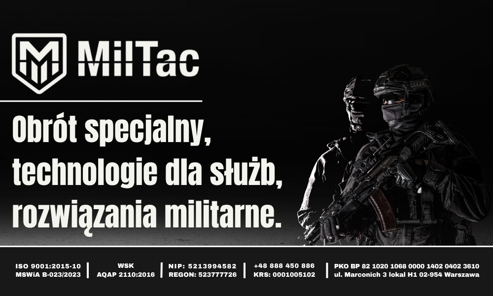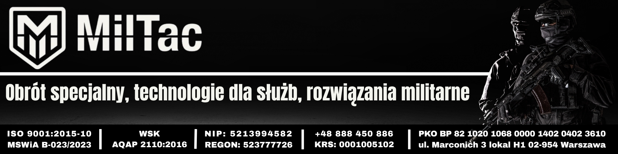 MILTAC SP. Z O.O. Koncesja MSWiA B-023/2023 ISO 9001:2015-10 AQAP 2110:2016 WSK Marconich 3, Lokal H1, Warszawa 02-954 Gościniec 42, 00-704 Warszawa Podleśna 83, 05-552 Łazy hurt@miltac.pl miltac@miltac.pl +48 888 450 886 +48 889 818 886